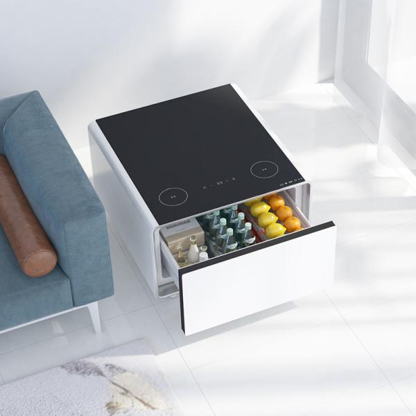 Mini Side Table Drawer Beer Beverage Cooler with Tempered Glass and Wireless Charging Images |